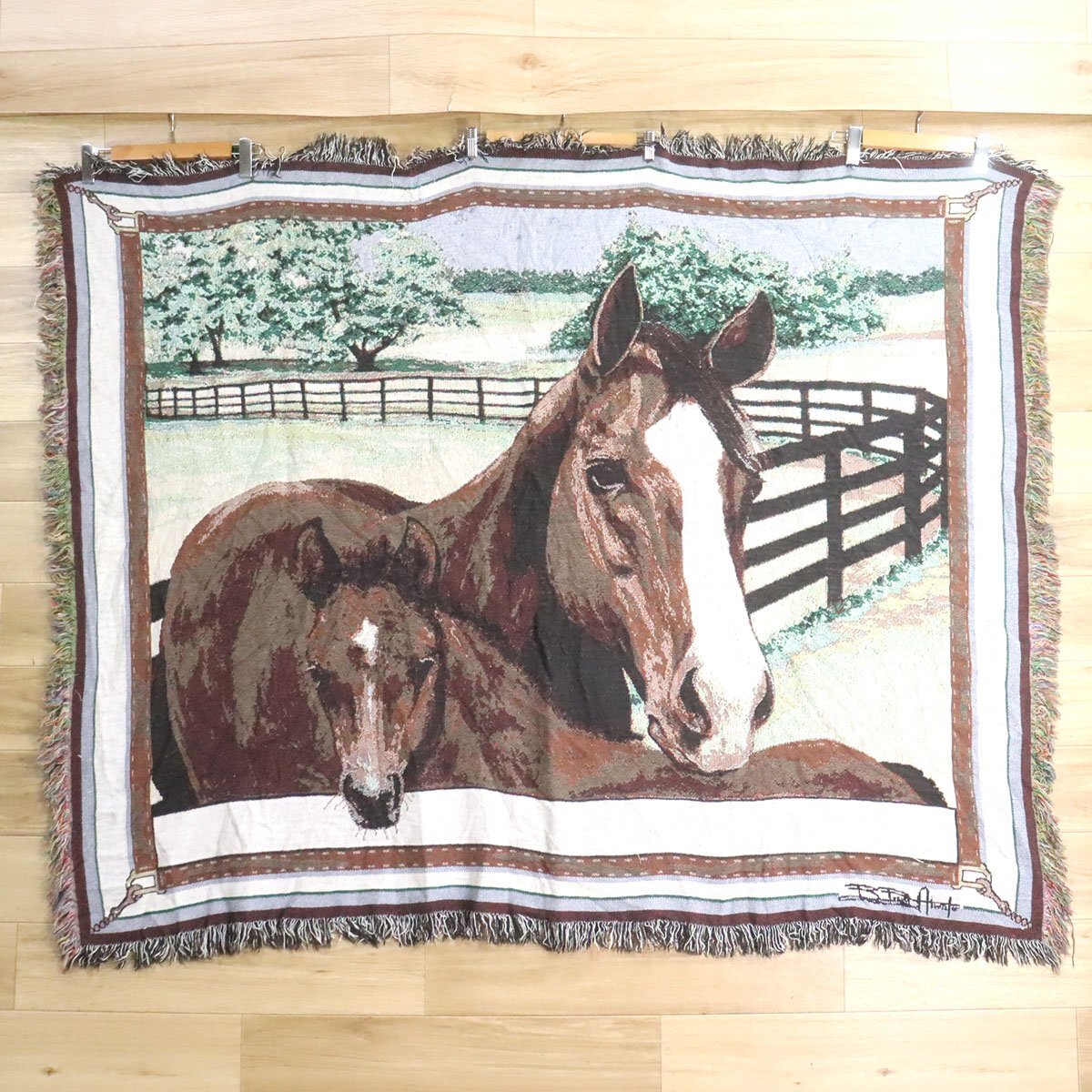 - A5-3 I/I11.7-3 USA製 馬 ホース 馬の親子 ラグ マット カーペット ブランケット タペストリー ソファーカバー インテリア雑貨