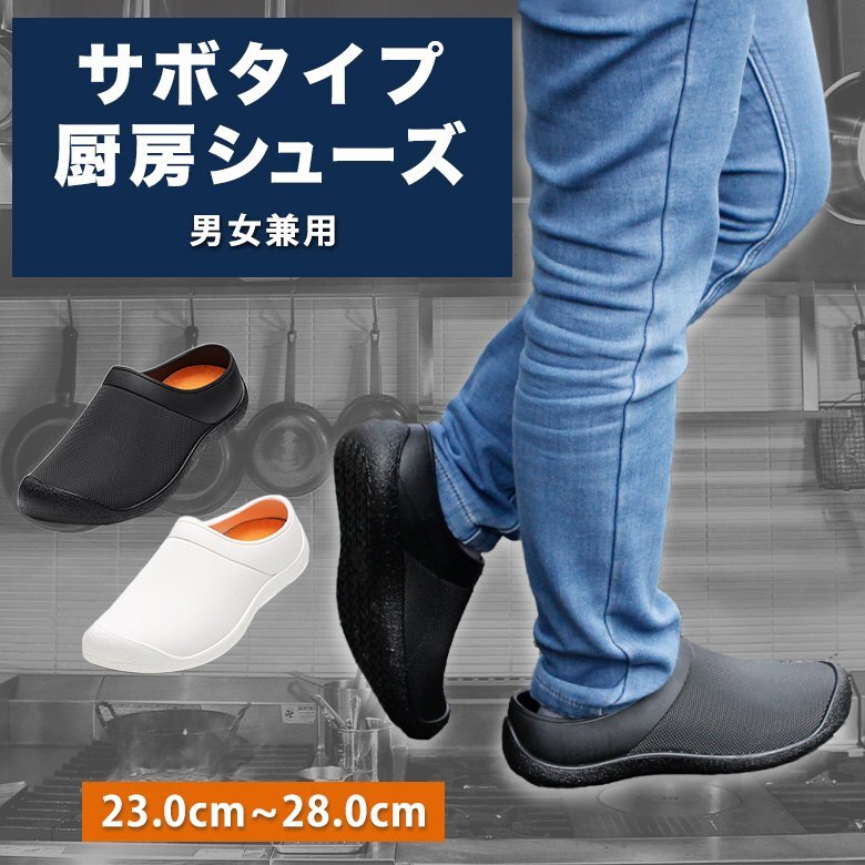 - コックシューズ キッチンシューズ サボタイプ ( ブラック 28cm ) サボ サンダル 厨房靴 黒 白 安い 耐油性 飲食店 キッチン ホール 丸洗い