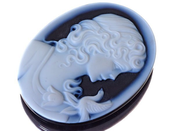 > 【ジュエリー極】綺麗な貴婦人と小鳥の彫刻 高級ブルーストーンカメオルース 34.9mm×26.9mm w5907-m【送料無料】