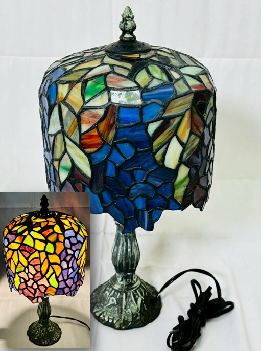 - ステンドグラスランプ テーブルランプ ステンドガラス レトロ 照明 光 骨董 飾物 置物 インテリア アンティーク ヴィンテージ 動作確認済
