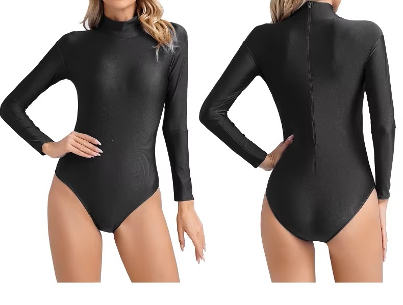 > Lサイズ BLACK IEFIEL社オーダー製品 ポリエステル光沢 ツルツル 艶々 ボディスーツ背中ファスナーストレッチ レオタード