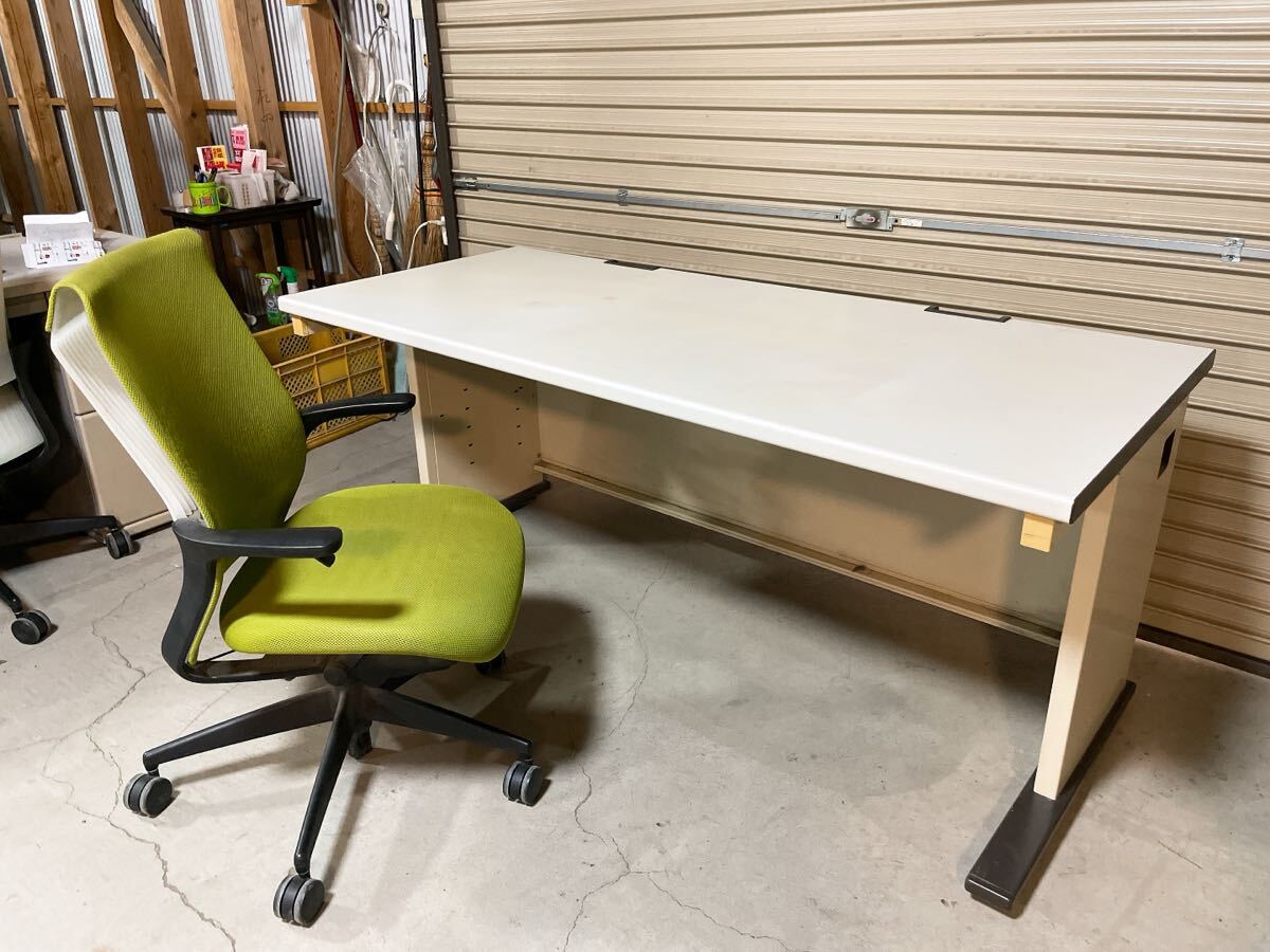 - 中古 平机 事務椅子 セット テーブル パソコンデスク 作業台 チェア 椅子 イス いす 事務所 店舗用品 茨城県常陸大宮 1111え10 M 家EC