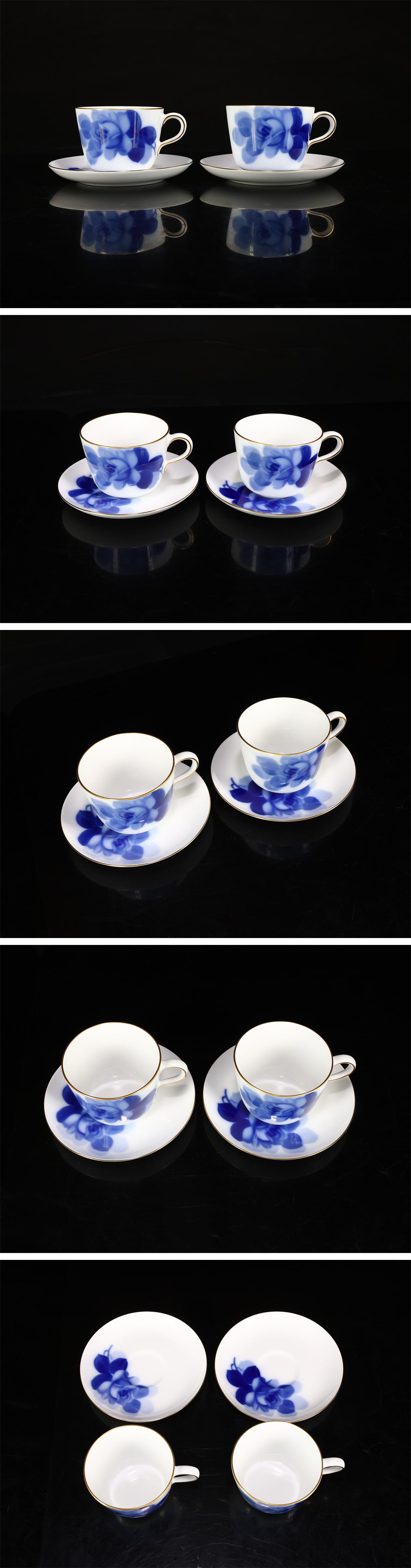 > 【吉】CN869 OKURA 【大倉陶園】 金彩ブルー 薔薇紋 カップ&ソーサー 2組 4点セット/美品!