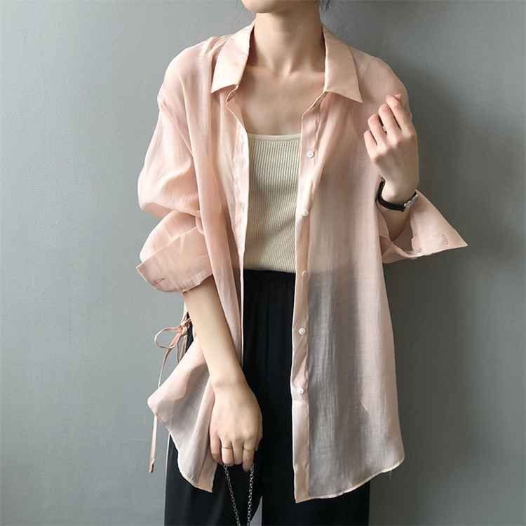 - シャツ ブラウス 日よけシャツ 長袖 ゆったり M ブルー