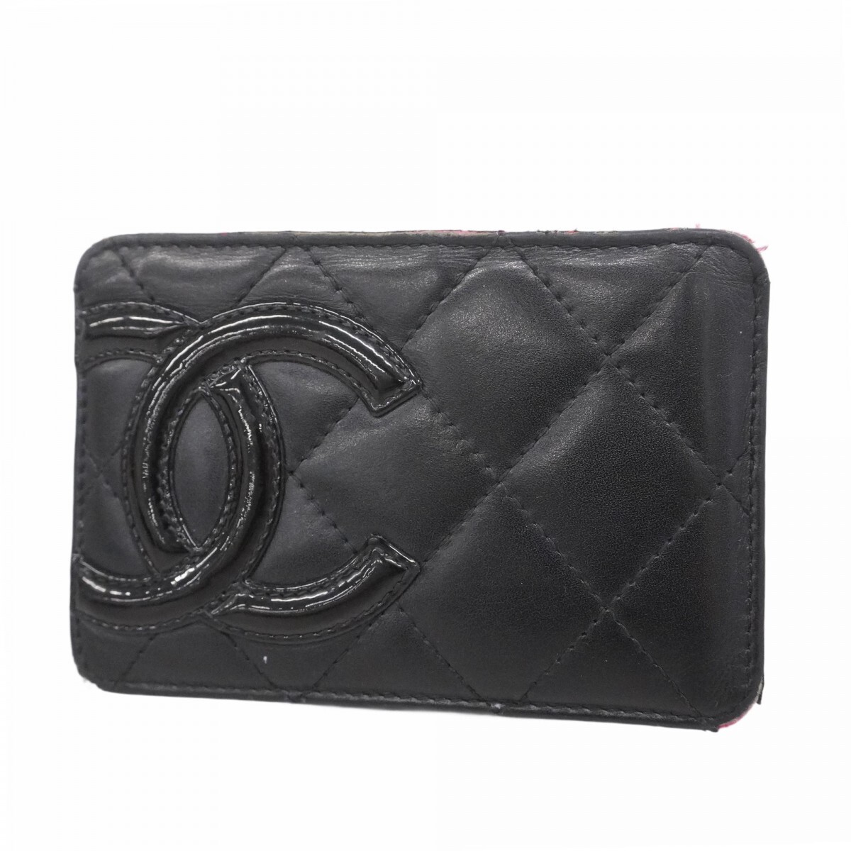 - 【5oc1498】シャネル カードケース カンボン ラムスキン ブラック【中古】レディース
