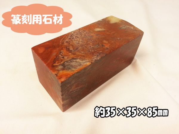 > 01105 【未使用品】篆刻用石材 寿山石? 茶色系石材 約35×35×85mm やや傷あり はんこ 判子 彫刻 印材 印章 天然材質