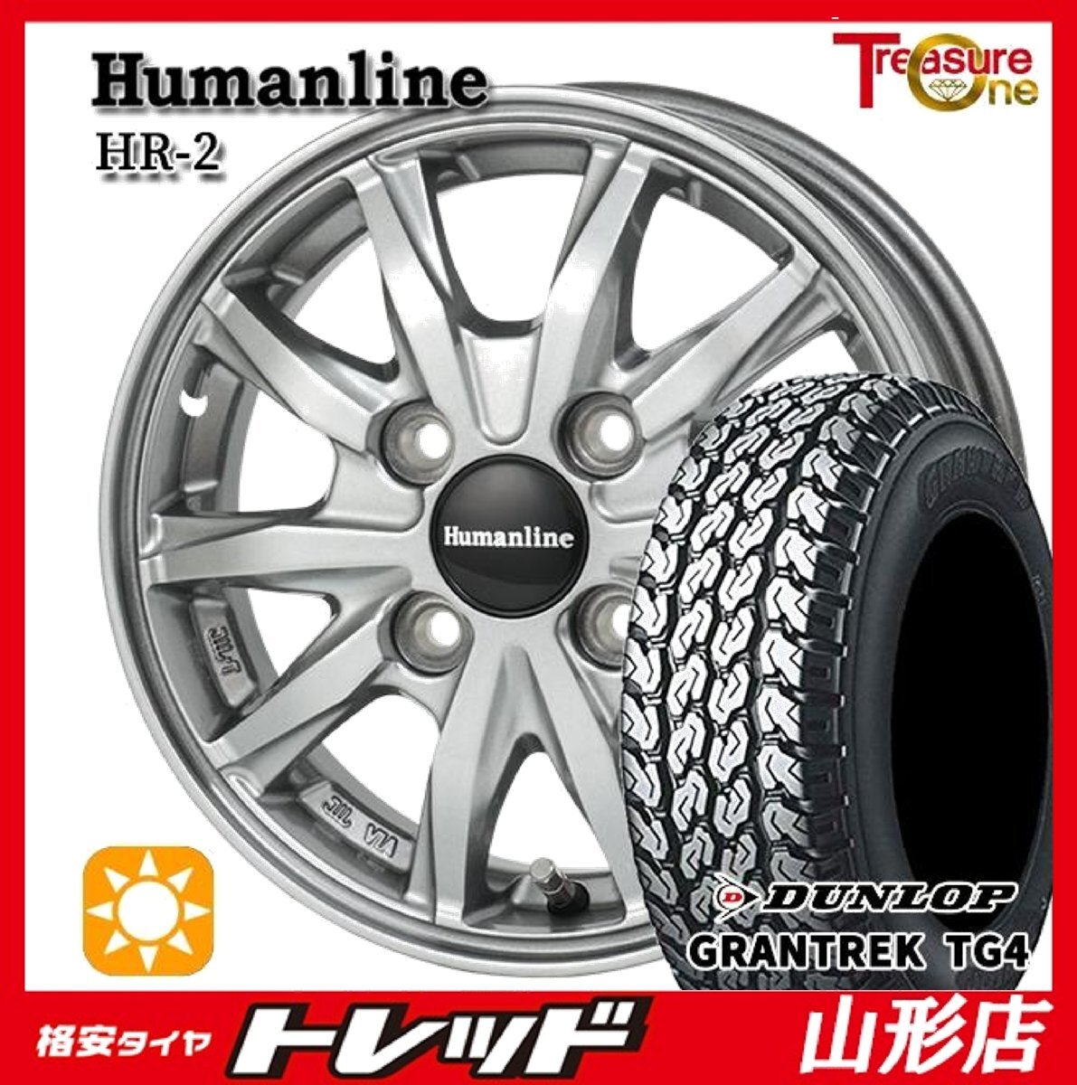> 山形店 新品 夏タイヤホイール4本セット Humanline HR-2 12インチ 3.5j 4H100 +42 DG DUNLOP グラントレックTG4 145R12 6PR 2024-25年製