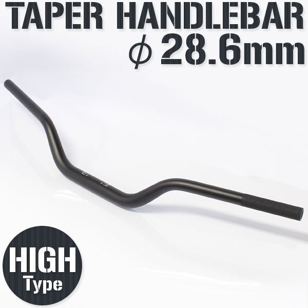 > 汎用 アルミ テーパーハンドル 28.6パイ ブラック 黒 HIGHタイプ WR250 DT200 セロー TT250R TW200 TW225 XT250X ランツァ DRZ50 DRZ400SM