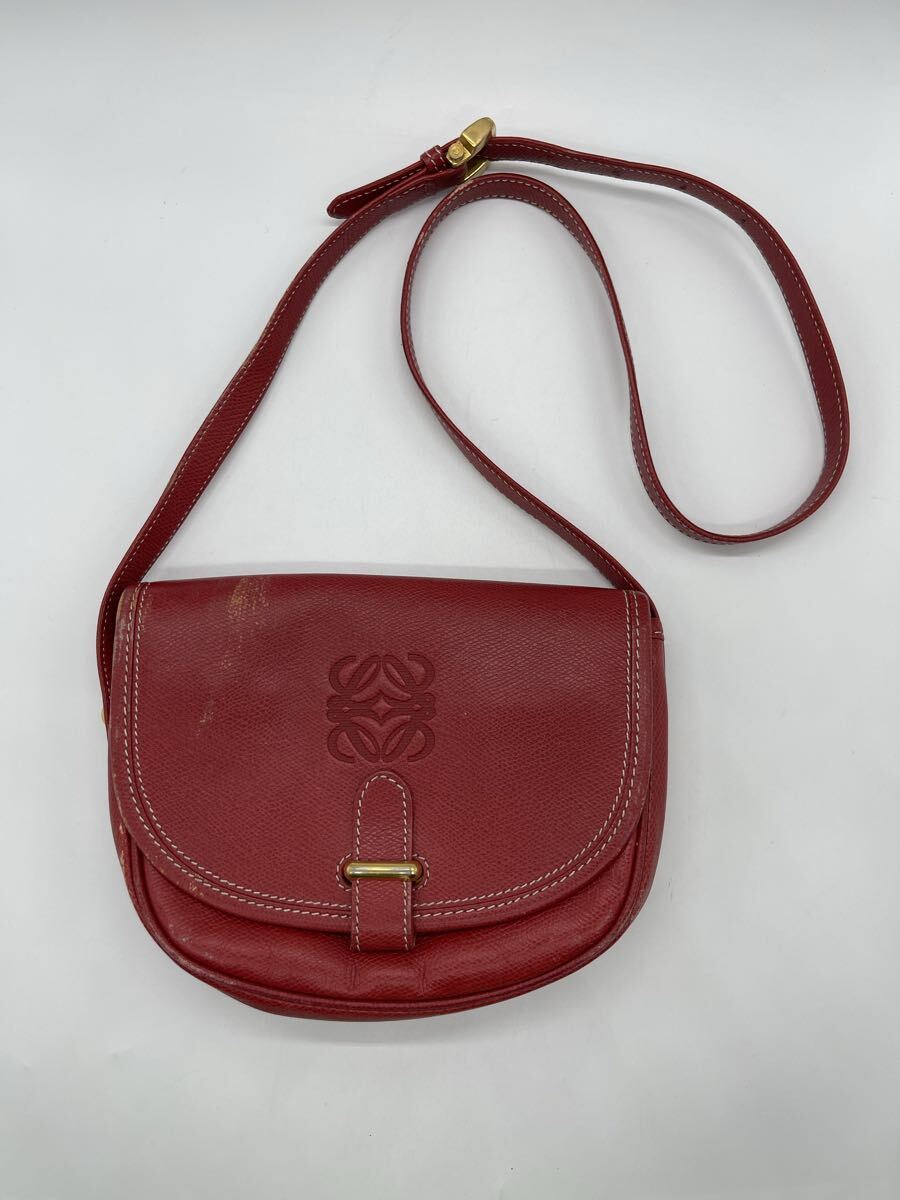 - 【1円スタート】LOEWE ロエベ ショルダーバッグ アナグラム ロゴ刻印 レッド レザー MADE IN SPAIN ヴィンテージ