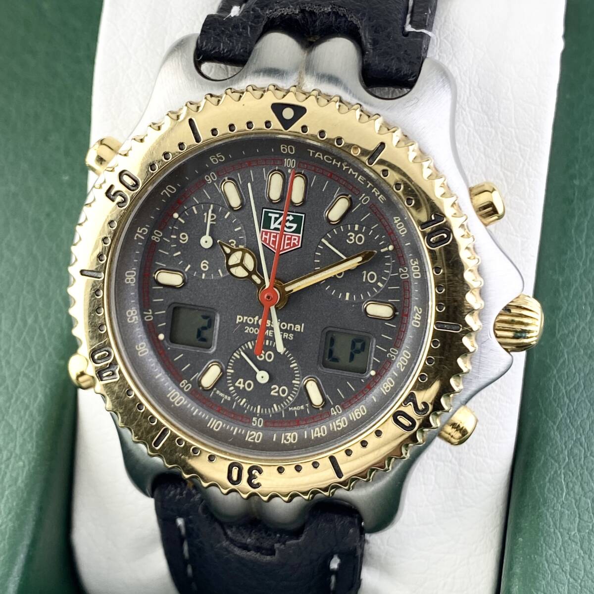 > 【1円〜】TAG HEUER タグ ホイヤー 腕時計 メンズ CG1122 セル クロノグラフ グレー系文字盤 ゴールド プロフェッショナル 200m 可動品