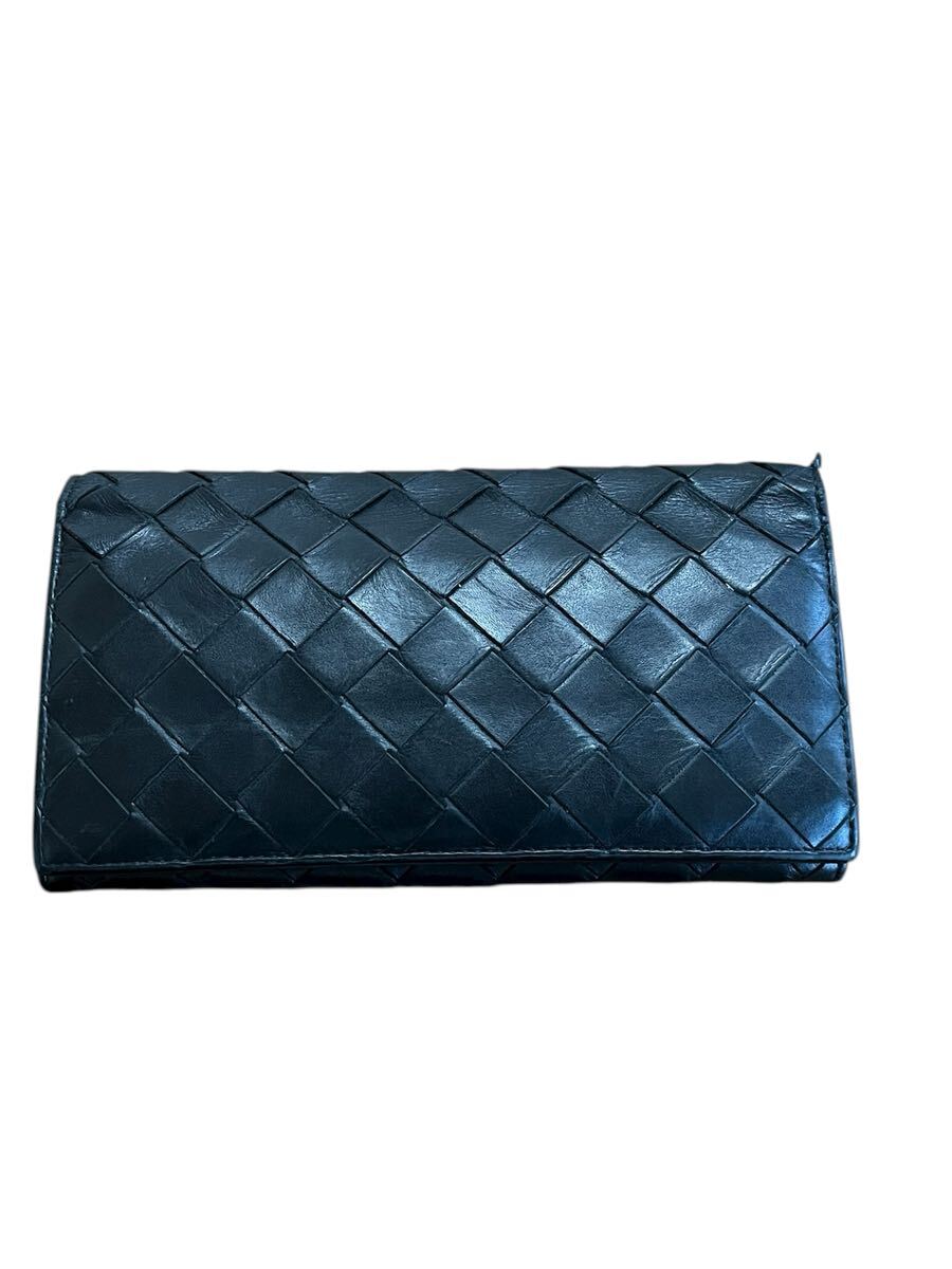 > 33 【現状品】BOTTEGA VENETA ボッテガヴェネタ 長財布 イントレチャート 二つ折り ブラック 黒 オレンジ レッド ロングウォレット