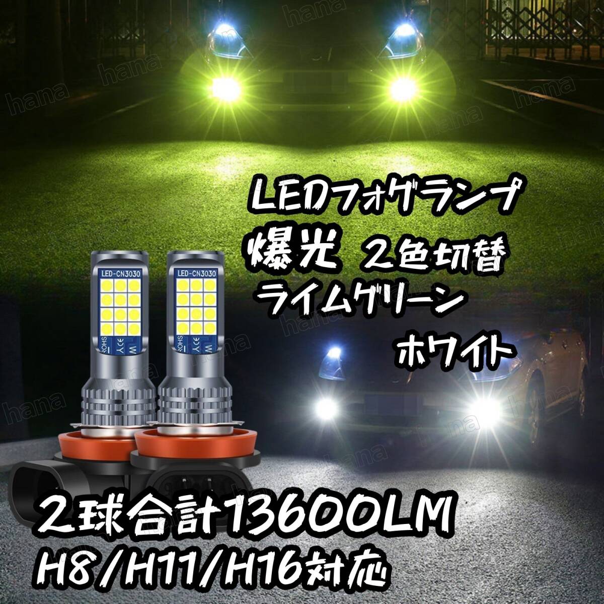 > 爆光 H8/H11/H16 2色切り替え LED フォグランプ バルブ ライムグリーン ホワイト 汎用品 アルファード20後期 30前期 ヴェルファイア