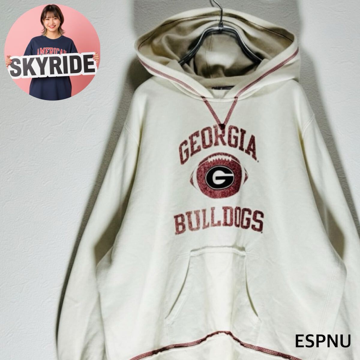 > 美品 ESPNU イーエスピーユー 2000s パーカー GEORGIA BULLDOGS カレッジロゴ Mサイズ ホワイト コットン混 ストリート系 通年着用 #SB0259