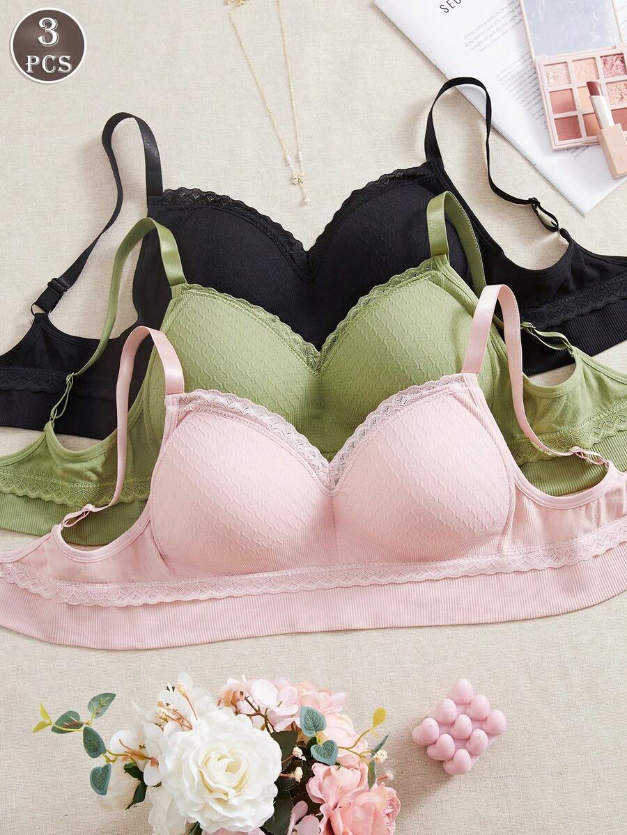 - インティメート ブラジャー 3枚セット レディース無地シームレスレースランジェリー ブラジャーパンツ、調整可能なショルダーストラッ