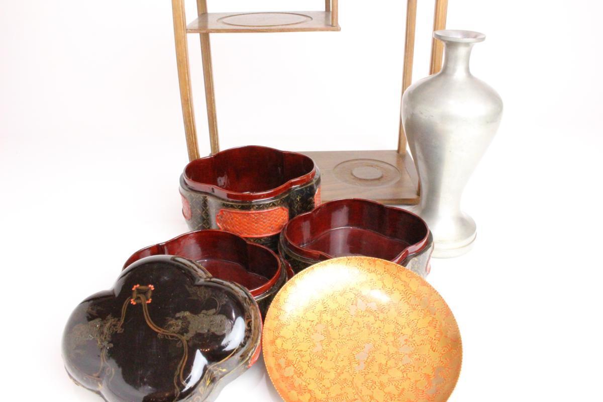 双虎図の堤重(3段)と錫徳利・杯の仕込弁当