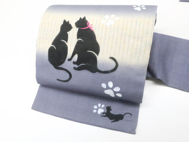 - 《古美術京松》九寸名古屋帯 オリジナル お太鼓柄 夏物 夏 ネコ 猫 肉球 正絹 r7b11-207