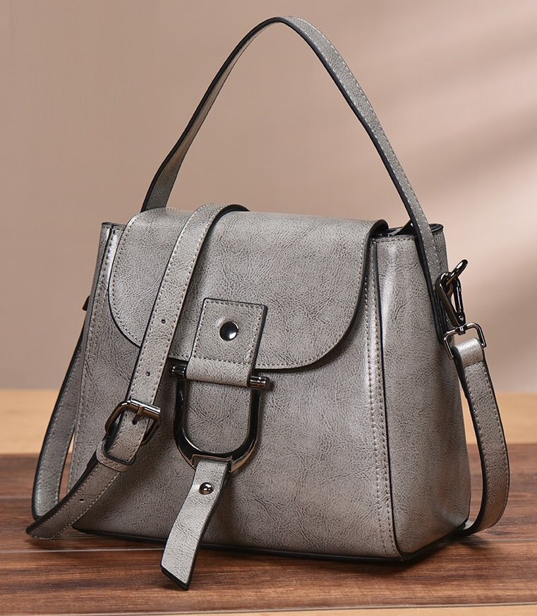 - 高品質 牛皮 ハンドバッグ ショルダーバッグ グレー レディース 女性 【n417】
