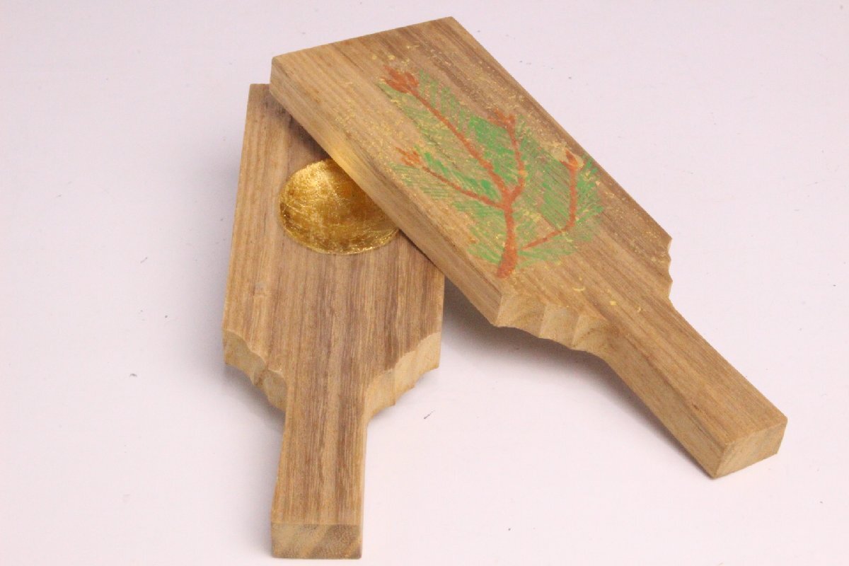 新年 初釜 羽子板 若松の絵 香合 福岡 山崎如悦 作「共箱・共布」