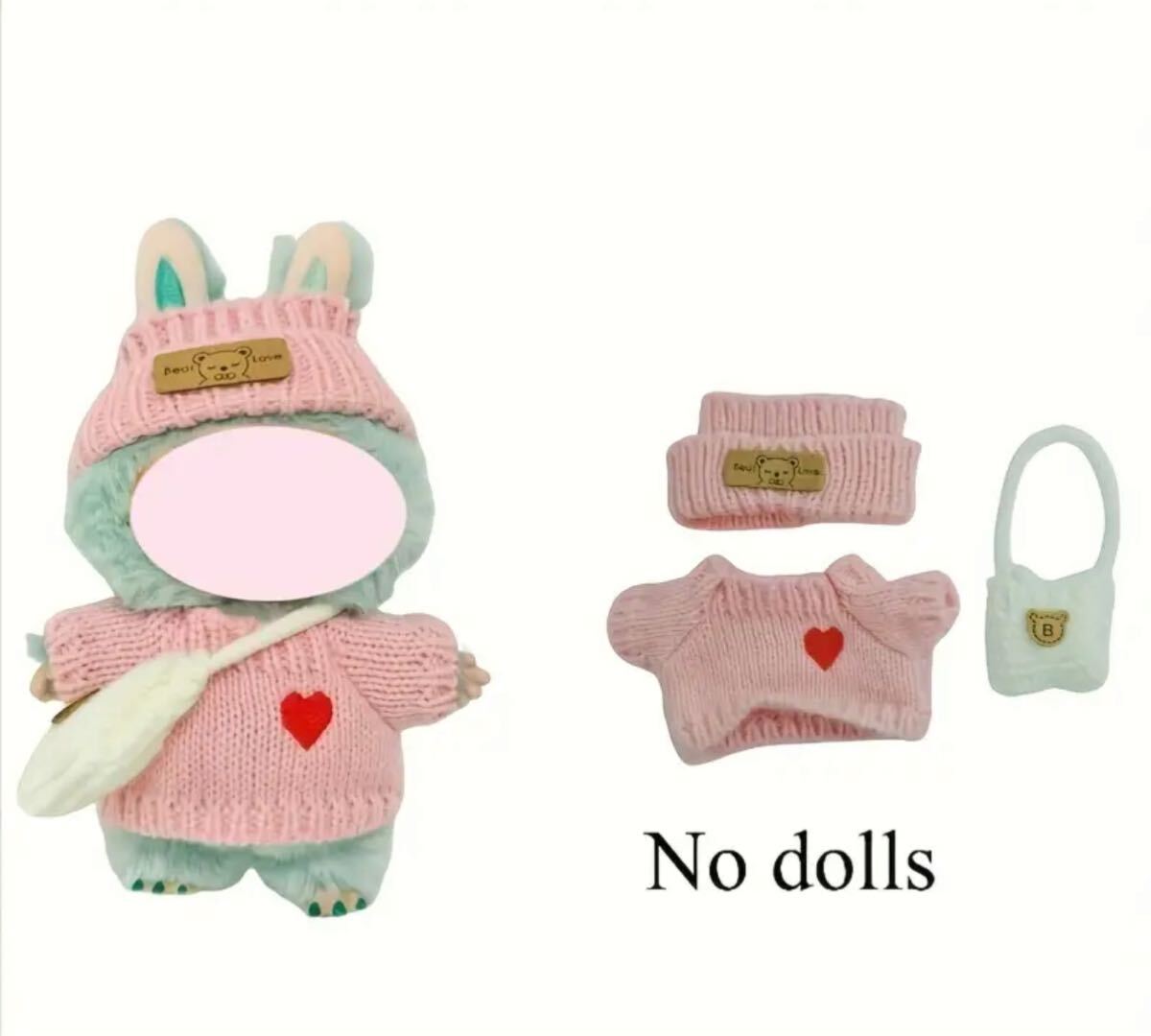 - ラブブ 着せ替え服 ニット帽 ラブブ服 ぬいぐるみ洋服 ピンク 白ポシェット