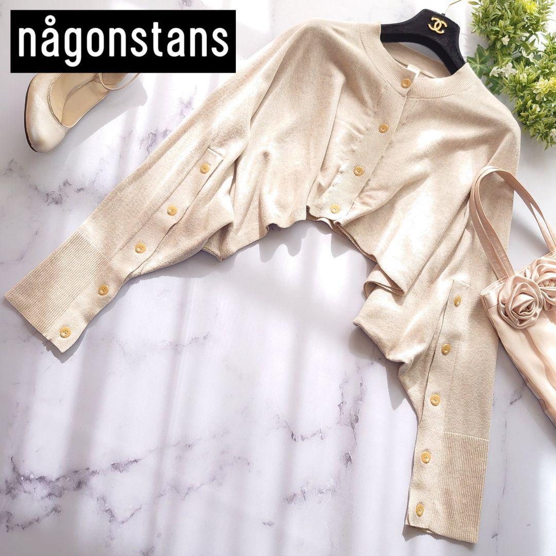> nagonstans ナゴンスタンス 変形 ボレロ カーディガン クルーネック 長袖 コットン ベージュ ショート丈 羽織り トップス 38 M アウター
