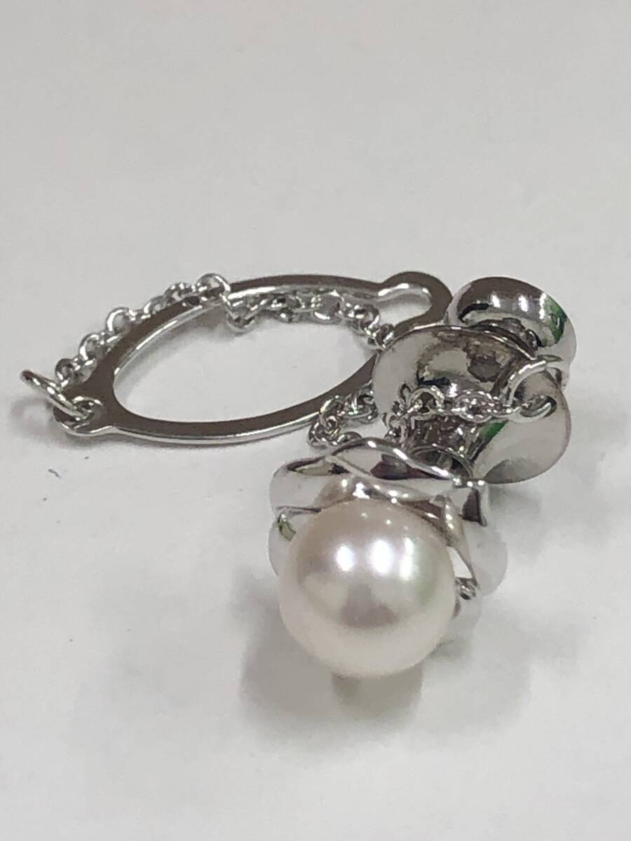 > MIKIMOTO ミキモト 本真珠 アコヤ真珠 パール 約7.2mm タイチェーン タイピン ビジネス 紳士 メンズ シルバー系