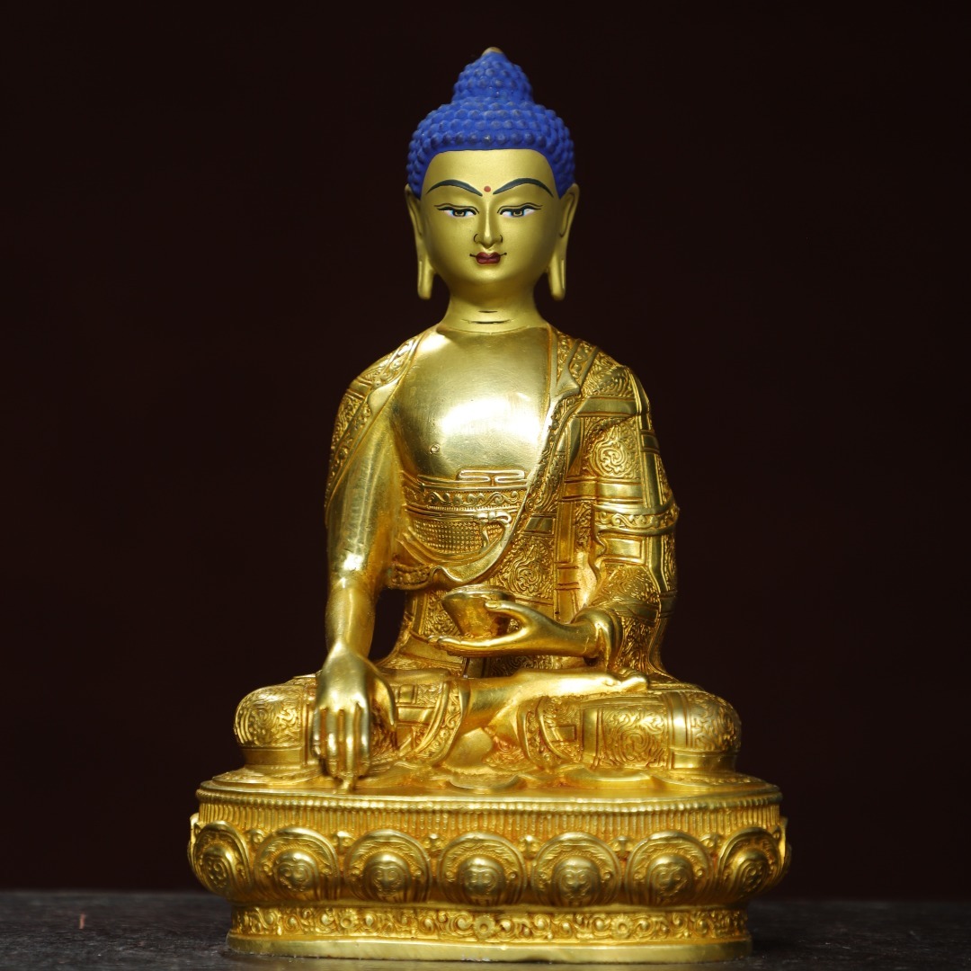 - 旧蔵 古銅彫 塗金 描彩 阿彌陀佛 佛像 古擺件 古置物 中国古玩 骨董品 時代物 稀少唐物