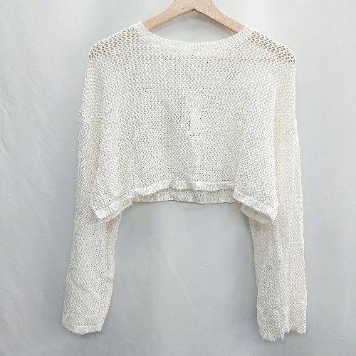 - ◇ ⊂ ◎●未使用● WEGO ウィゴー ショート丈 長袖 メッシュニット サイズF ホワイト レディース E