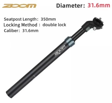 処分 ZOOM アルミ製 サスペンションシートポスト (微調整機能付き) 31.6×350ミリ 黒色 1376