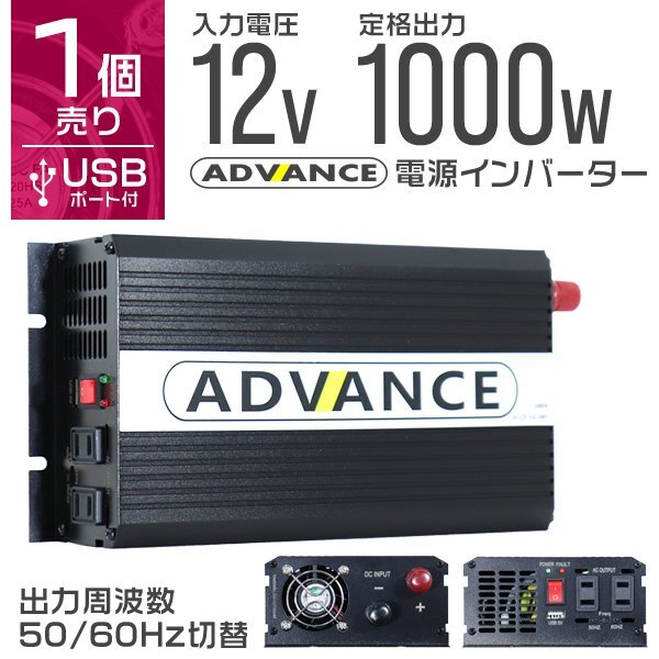 - 電源インバーター DC12V → AC100V 修正波 定格1000w 最大2000w 車載コンセント USBポート付 車用 カーインバーター