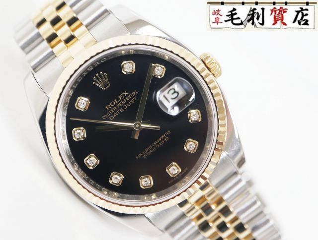 > ロレックス ROLEX デイトジャスト 116233G ブラック V番 コンビ 10Pダイヤモンド 自動巻き メンズ 【中古】 時計