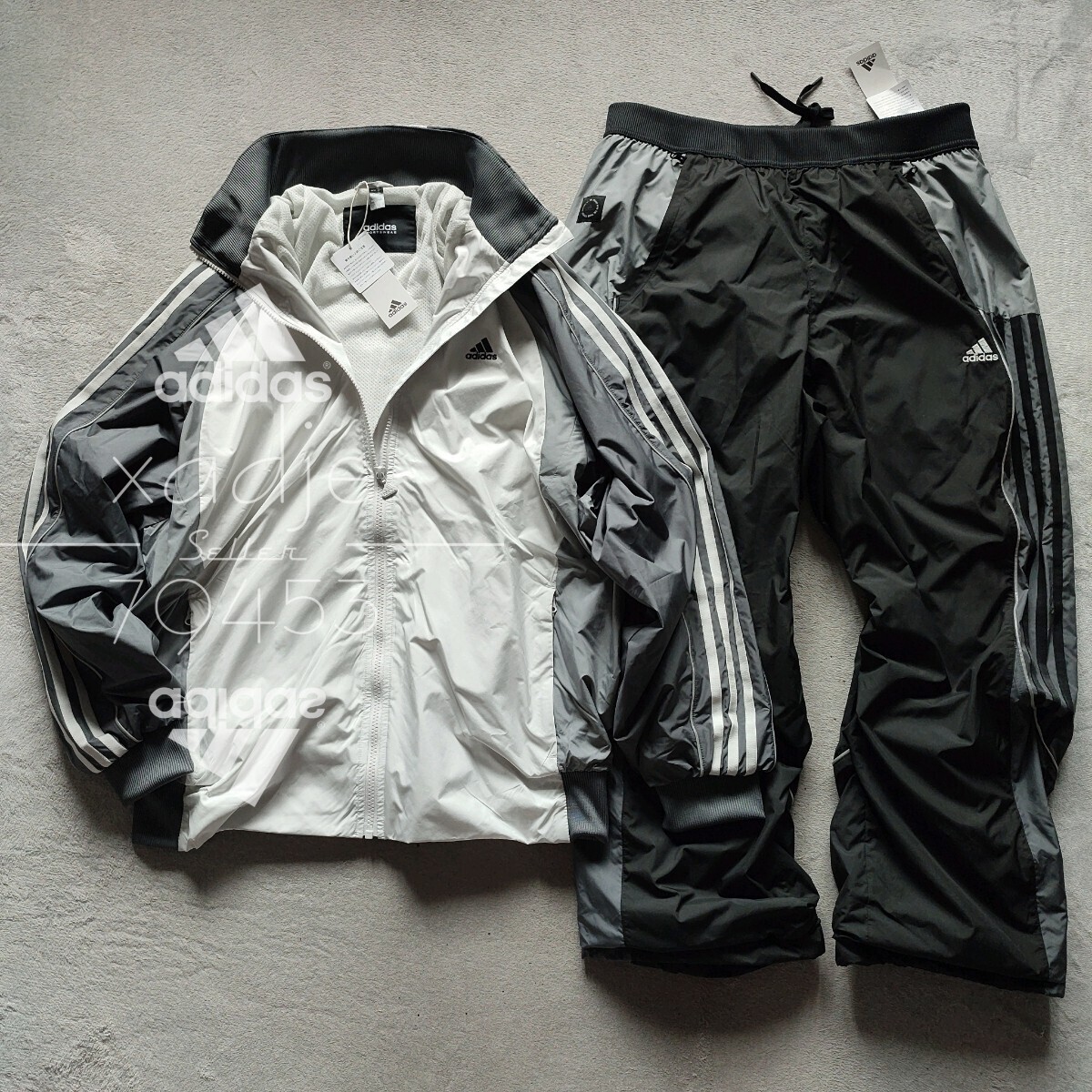 > 新品 正規品 adidas アディダス 上下セット ナイロン ウィンドブレーカー セットアップ 中綿入り 白 ホワイト グレー 黒 定価18700円 M
