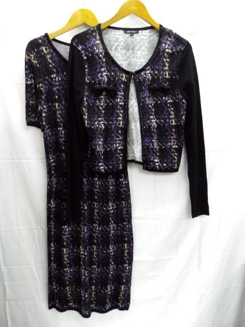 > 美品★LEO GUY◎レオギー/カーディガン&半袖ワンピース/アンサンブル/セットアップ/総柄/ビーズ付き/2サイズ