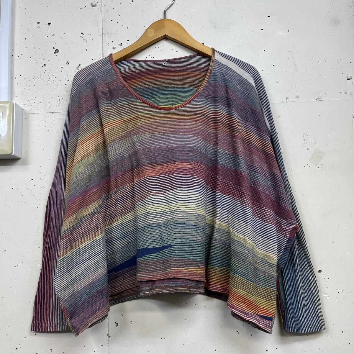 > JURGEN LEHL ヨーガンレール ボーダーカットソー トップス サイズM ワイド 丈短 コットン&ウール 長袖