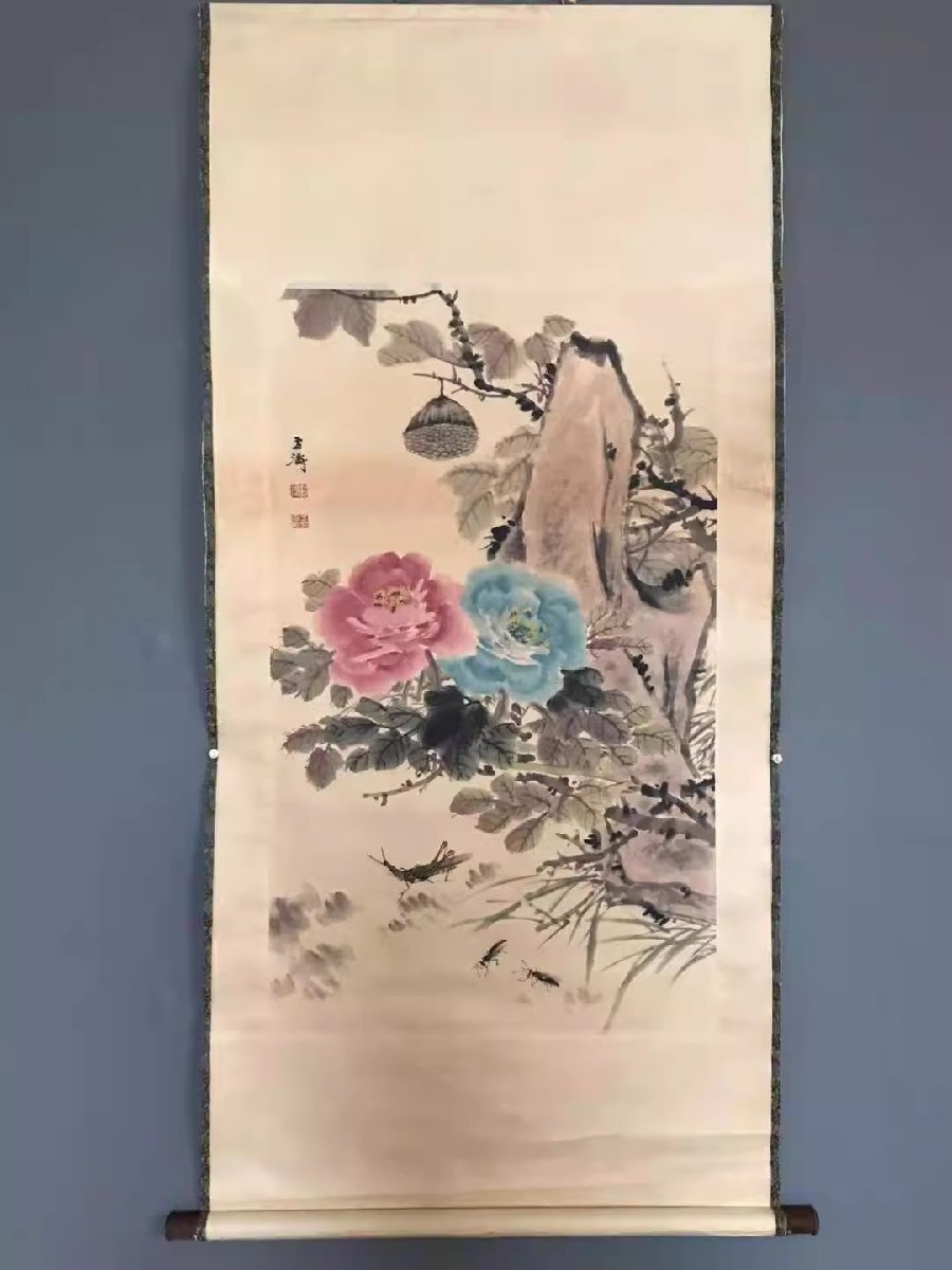 - 中国書画 静物画 牡丹 植物 画仙紙使用 鑑賞 中国美術品 掛軸 巻物 zh224