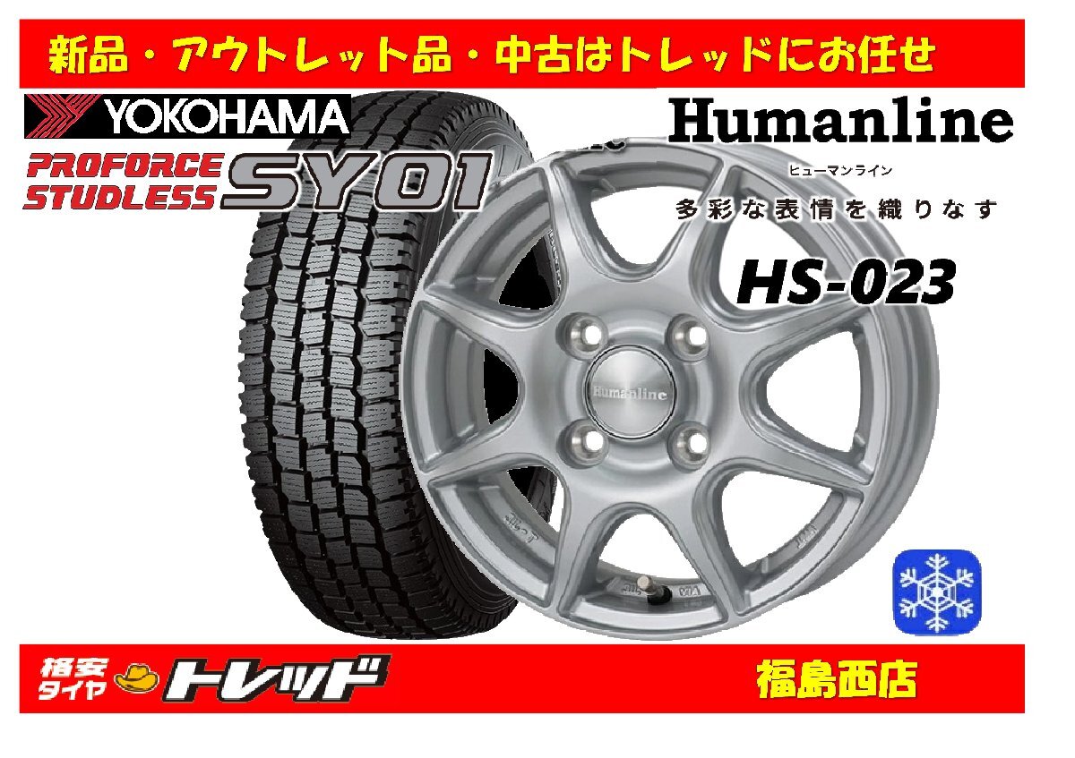 > 福島西 新品 スタッドレスタイヤホイール4本セット ヒューマンライン HS-023 12インチ 3.5J 100/4H +42 & ヨコハマ SY01 145/80R12 80/78N