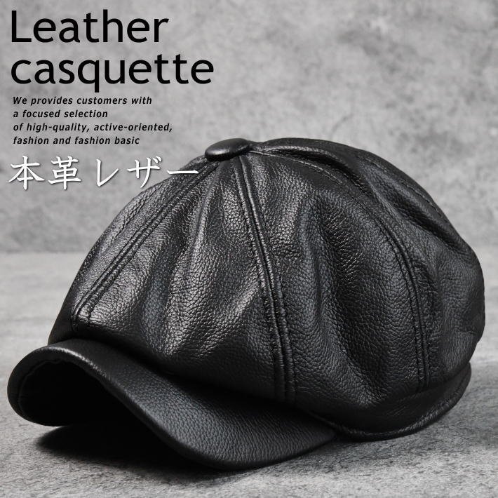 > 本革 レザー キャスケット ハンチング 帽子 メンズ キャップ あしたのジョー おしゃれ 皮製 7987327 ブラック 新品 1円 スタート