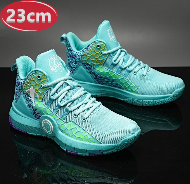 > 1スタ ☆ メンズ スニーカー 23.0cm ライトブルー 靴 シューズ 防滑 バスケットシューズ 通勤 通学 旅行 【126】