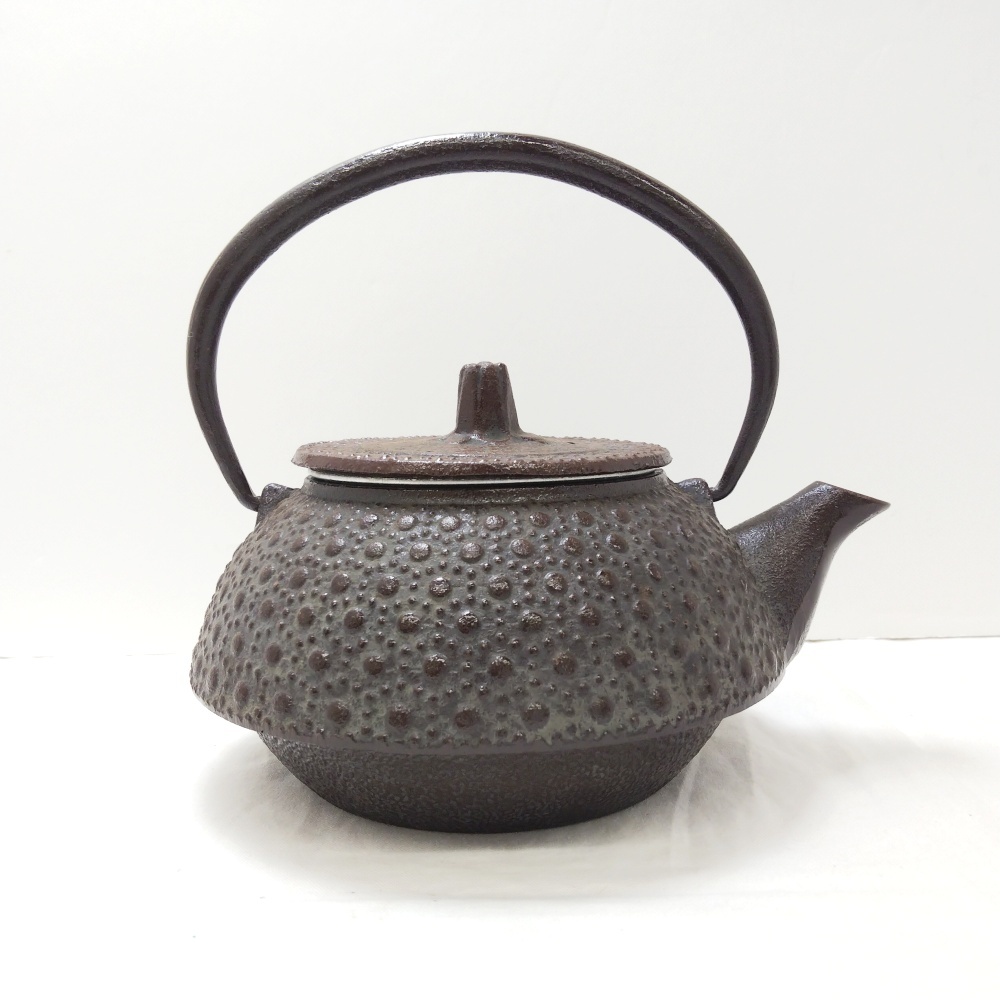 - B25-2175 鉄瓶 撫肩(なでがた) 湯沸かし 茶道具 金属工芸 鉄製 茶こし付き 銘なし 錆汚れあり 現状品
