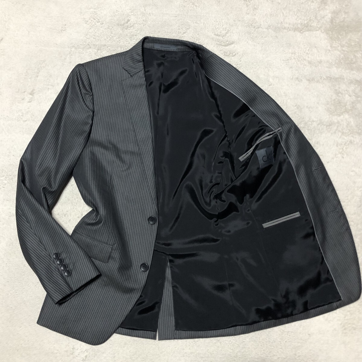 > ほぼ未使用 Calvin Klein カルバンクライン テーラードジャケット ブレザー 総裏地 2B チャコールグレー Sサイズ