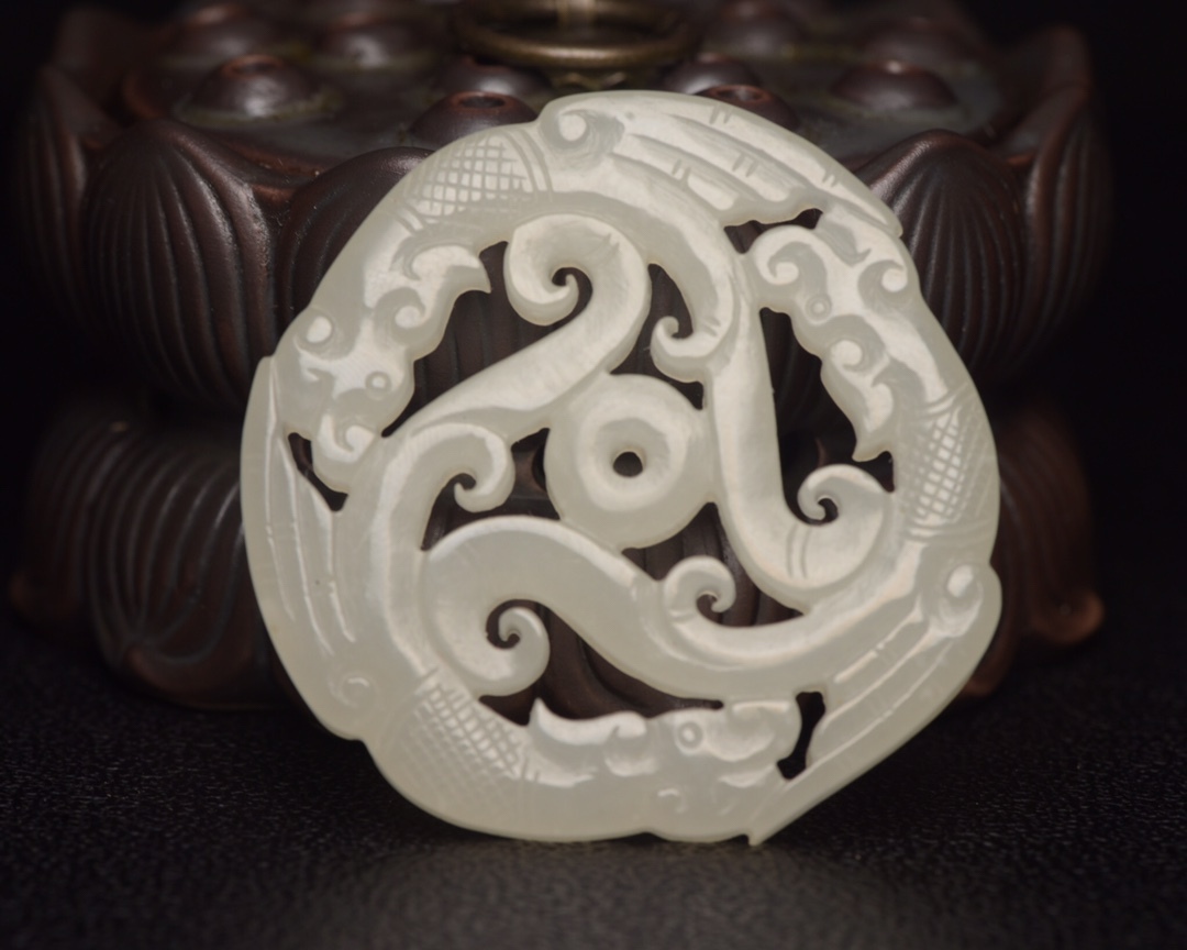 - 旧蔵 和田玉彫 龍牌 吊墜 根付 中国古玩 骨董品 時代物 稀少唐物