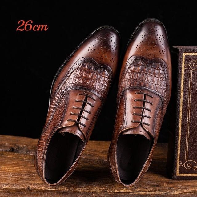 - ビジネスシューズ メンズシューズ シューズ 靴 フォーマル ロングノーズ ローカット 紐靴 紳士靴 ワニ柄 ブラウン 26cm