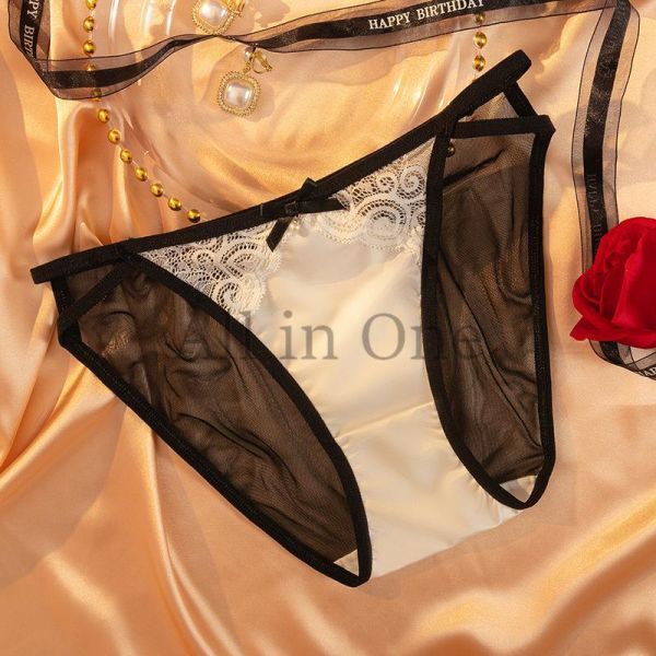> 116-267-4 レディース 光沢 トライアングル ブリーフ パンティー【ホワイト,XLサイズ】女性 下着 サテン セクシー ショーツ 透け パンツ .1