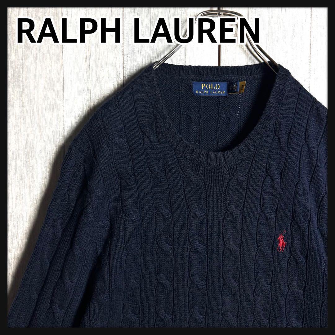 > 【現行QRタグ・美品】POLO RALPH LAUREN ポロラルフローレン レッドポニー刺繍ロゴ ケーブルニット セーター ネイビー・紺 M相当