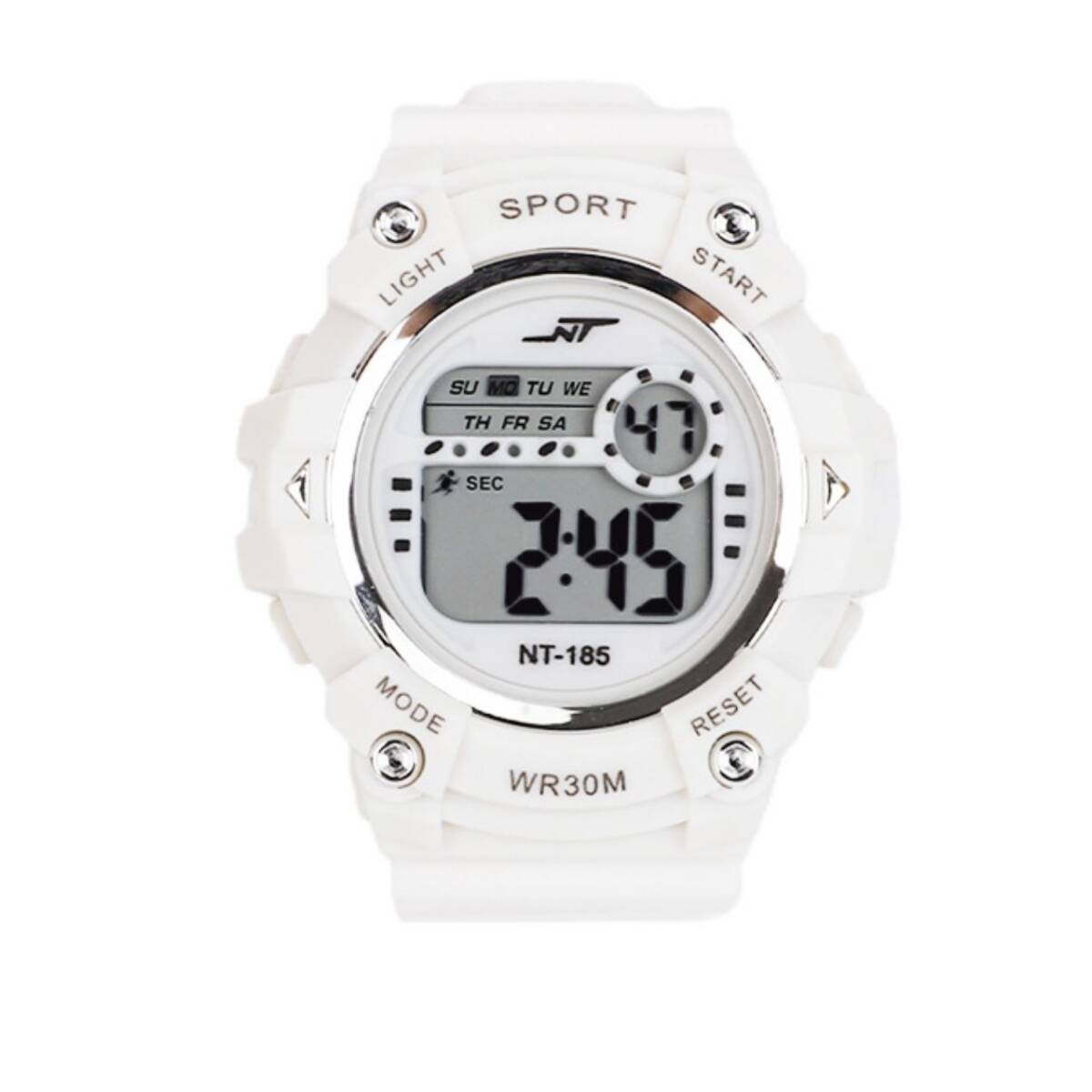 - デジタル 腕時計 スポーツ レディース フチ有 アラーム メンズ ベルト 白 デジタル腕時計