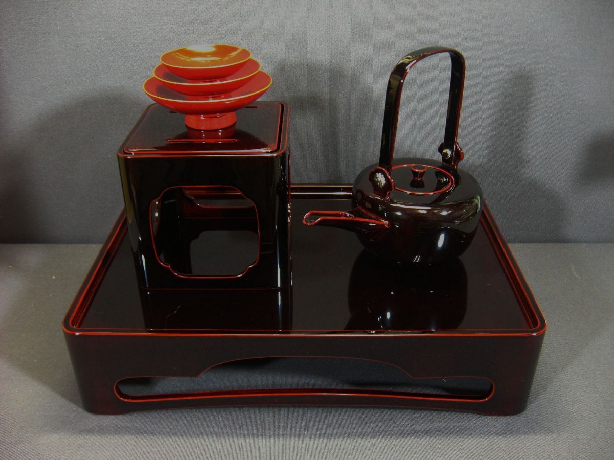- 屠蘇器 四ツ揃 溜塗 木製漆器 木箱付き/検索:お正月道具・お祝い道具・酒器・銚子・盃 (433)