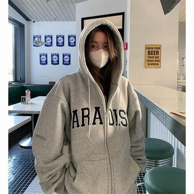 - パーカー レディース 長袖ジャケット オーバーサイズ 運動 通勤 ゆったり シンプル 人気急上昇 体型カバー カジュアル A01 XL