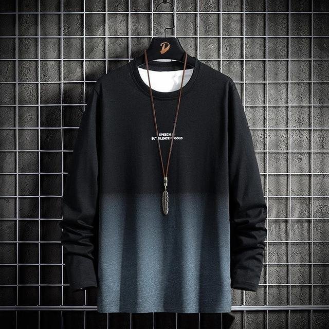 - 長袖 グラデーションtシャツ メンズ 秋服 ロングTシャツ トップス ロン クルーネック ブラック M