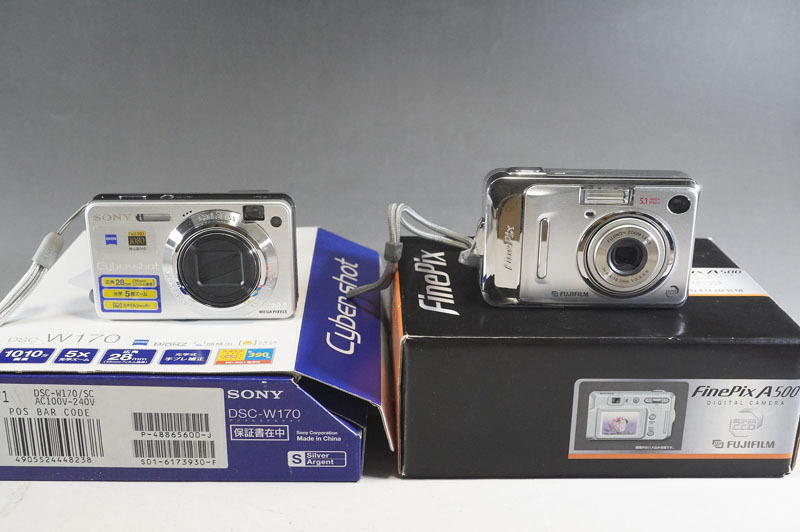 > 1円~【L896】デジカメ2点まとめて SONY/ソニー/DSC-W170/シルバー FUJIFILM/フジフィルム/FinePixA500/電池式 箱付