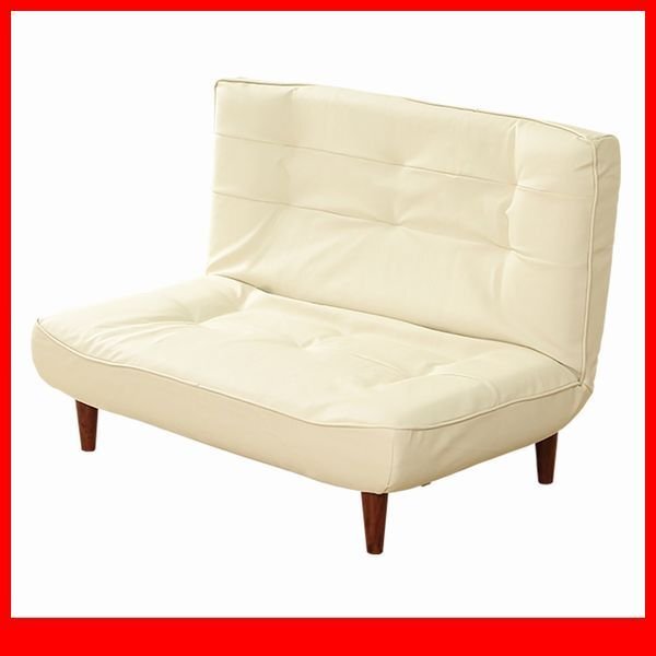 > ソファ★ハイバックソファ 2人掛け/ローソファ 座椅子にも/PVCレザー ポケットコイル リクライニング 日本製 完成品/アイボリー/特価/a3