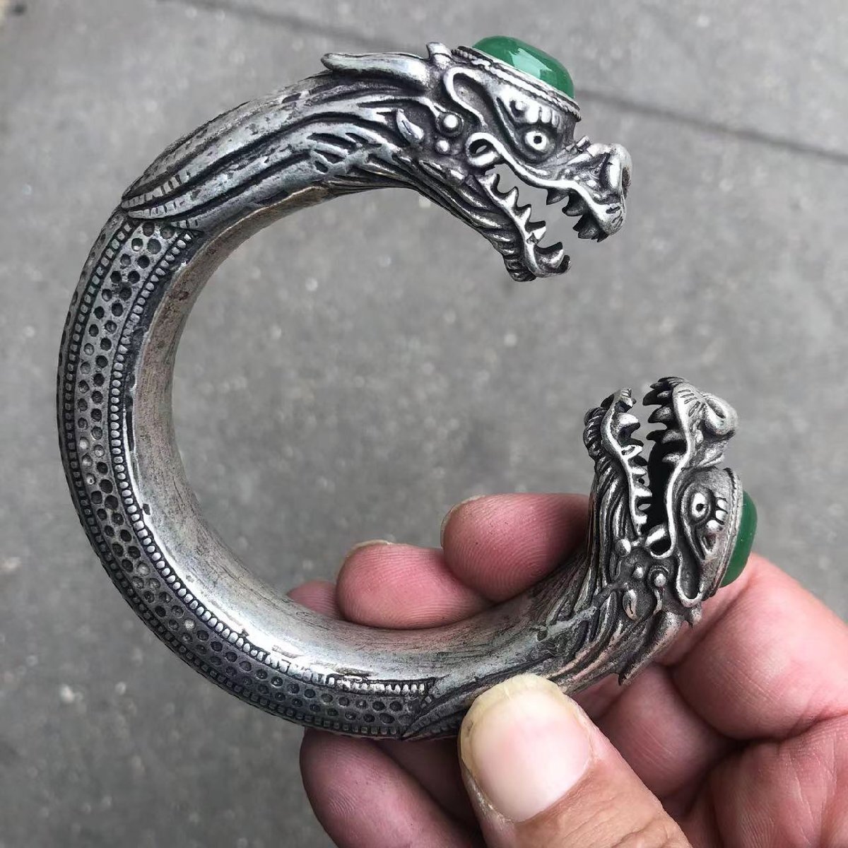 - 竜頭腕輪 腕輪 中国 金属 腕輪 透かし彫り 裝身具 護符 開運 風水 お守り 厄除け 装飾